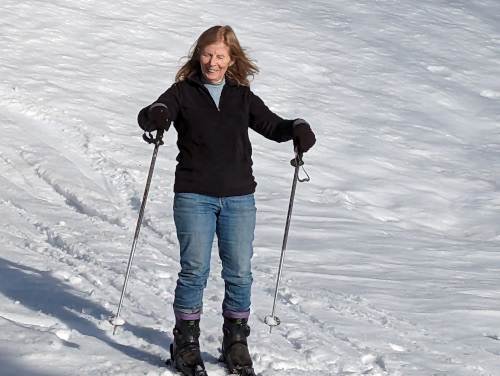 So Sue got her gear out and did a little skiing out on the hill in our backyard.