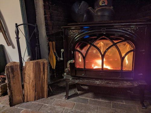 I was out pulling wood off of the stack to bring inside, but had to jump back quickly when one of the logs I moved triggered a collapse of the whole section around me.