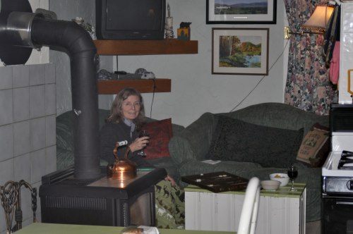 We had a beautiful drive up to The White Mountains Friday afternoon, pizza and wine for dinner, and way too much backgammon. Great fun, and very relaxing after the 2 hour trip up. Sue had done some research and had found a lovely little cabin in the Nordic Village complex that was just perfect for our needs. It even had a glass front wood stove that we took advantage of.