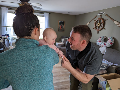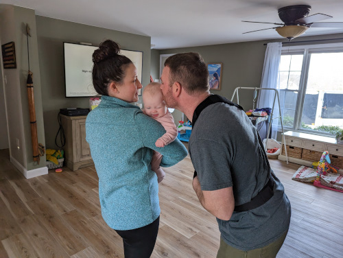 Wednesday 02/22/23 Sue and I drove down to wish Swayzie a happy birthday, and drop off a gift that we knew she wanted: a baby hiking carry rack.