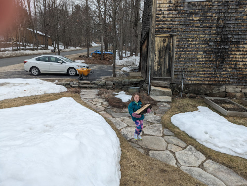 I picked Mia up earlier in the day Saturday, and before heading off she helped me haul some logs in from the woodpile so we could have a nice fire later in the wood stove as it was not only getting cold, but projected to snow a little.