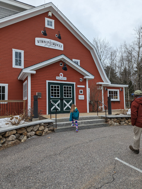 Sue had seen that Charlotte's Web was being performed at the Winnipesaukee Playhouse 03/26/23 and had gotten tickets for us to take Mia there. After the play, we went to the Innisfree Bookshop where we got a book that Mia wanted,and then we all went to dinner at The Camp restaurant across from the top of Lake Winnipesaukee.