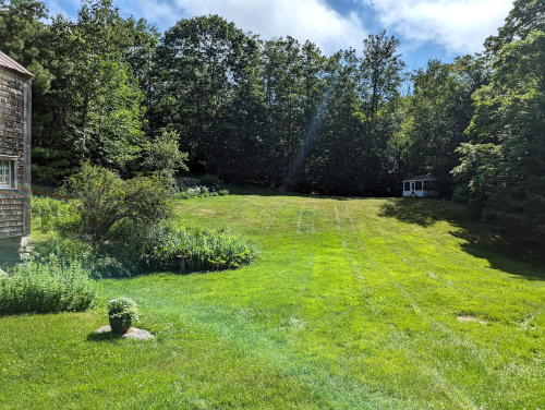 There was a nice break in the rains early on Tuesday morning July 4th, and so Sue and I took that opportunity to take Beau for a great mile and a half walk over through the woods at Leary Field. I had kept my sailor's eye on the sky, and could see things changing. We paced it pretty fast for about the final third of the hike back to the car as it was just starting to spit. We had just about got back to the house when it started to drizzle, and not long after that it poured.